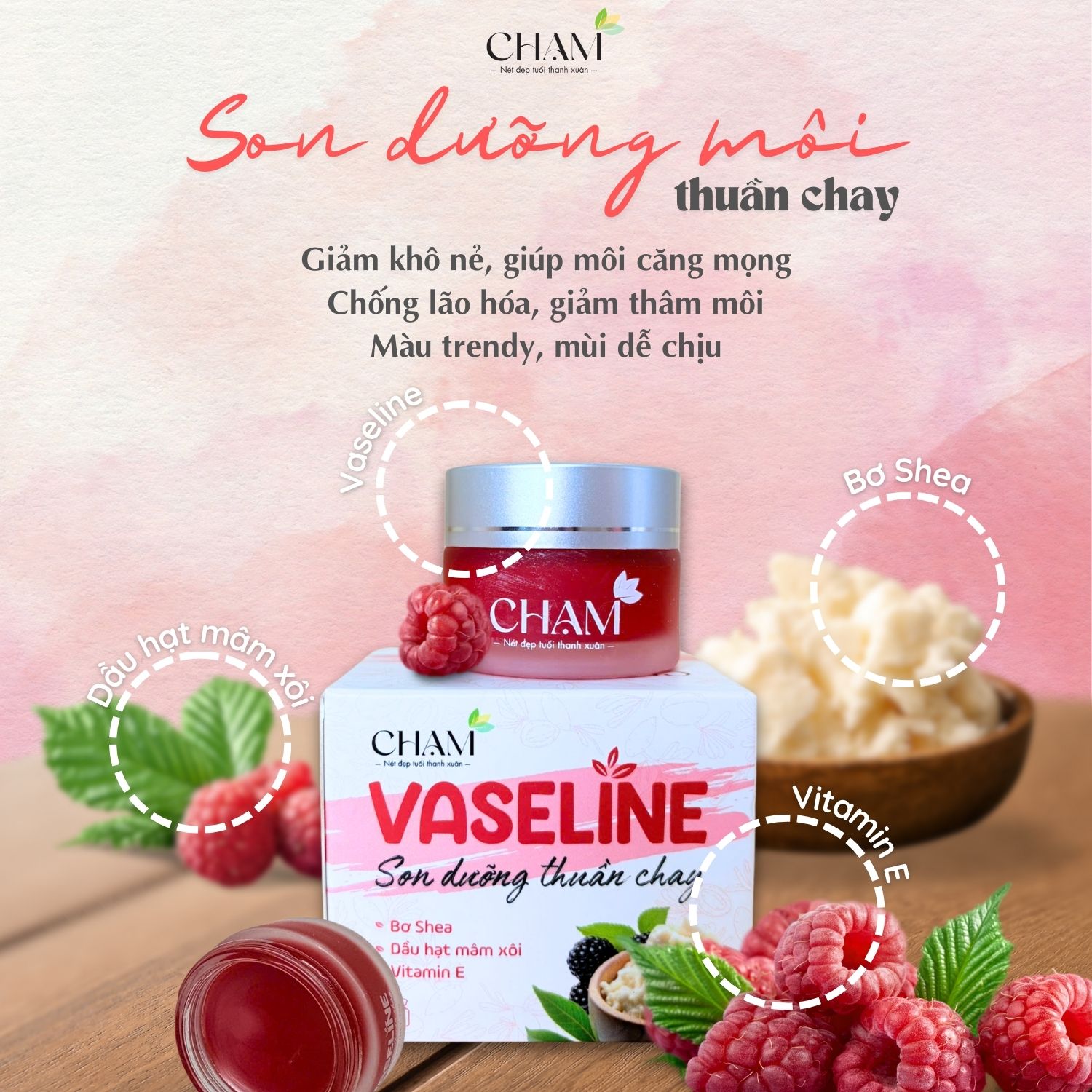 Với thành phần chính bao gồm Vaseline, dầu hạt mâm xôi, vitamin E và bơ hạt mỡ, sản phẩm giúp đôi môi của bạn luôn căng mọng, dưỡng ẩm mềm mại suốt cả ngày. Mỗi khi thoa, bạn sẽ cảm nhận được một lớp dưỡng mỏng nhẹ, không bết dính, mang lại cảm giác thoải mái và tự nhiên. Đặc biệt, sản phẩm có mùi hương dịu nhẹ, tạo cảm giác dễ chịu khi sử dụng.